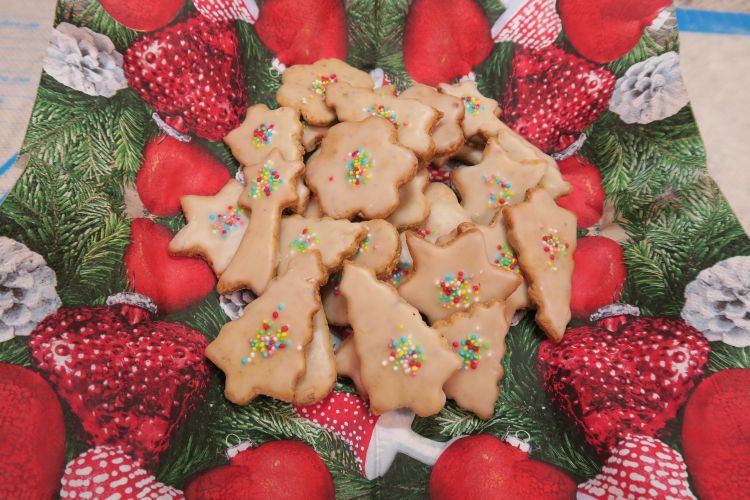 - Erkaltet können die Plätzchen verschieden glasiert werden und nach Belieben auch von Kindern mit farbenfrohen Streusel oder Kügelchen bestreut und dekoriert werden. Auch gehackte Pistazien oder Nüsse kann man darauf streuen.