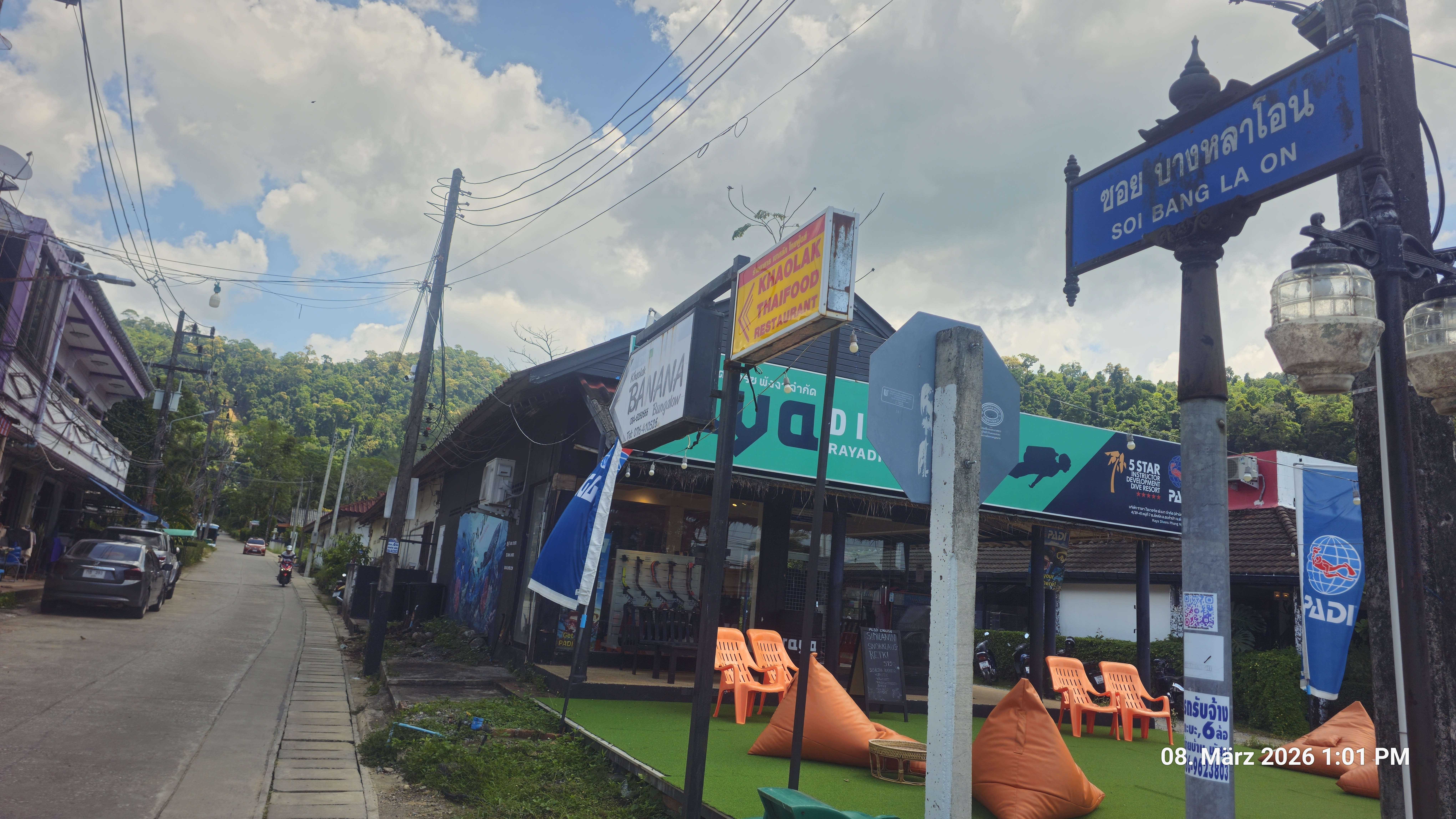 Jetzt bin ich wieder zum Essen gegangen, dafür habe ich ein einen Spaziergang gemacht zum Khao Lak Center und weiter bis zum Khao Lak Noodels, ein Imbiss Resaturant.