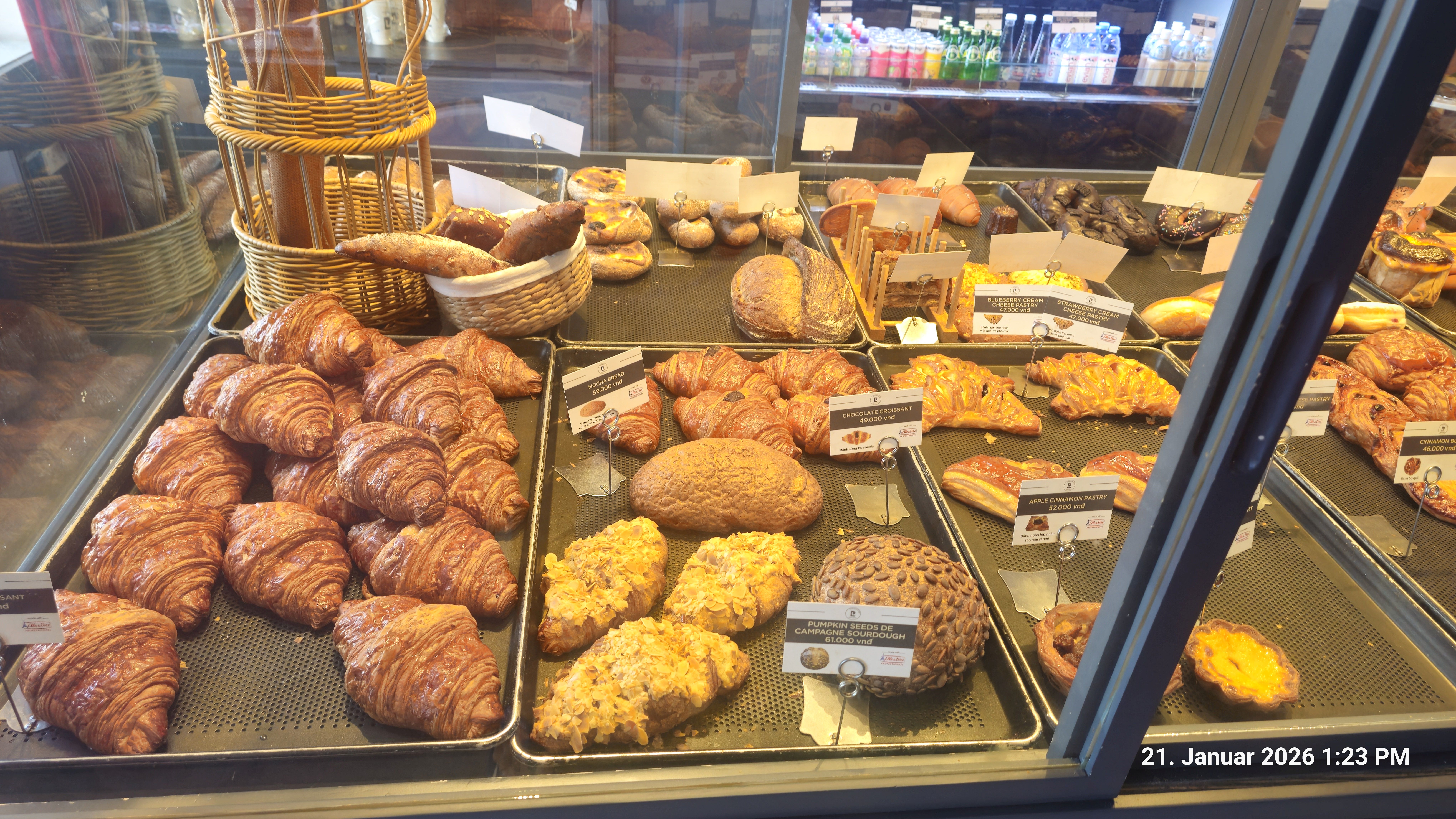 Größtem Einkaufszentum gefahren umd dort Mani abzuholen. Wir sind dann Cafe trinken gefahre und ich habe ein gefülltes Croissant dazu gegessen.