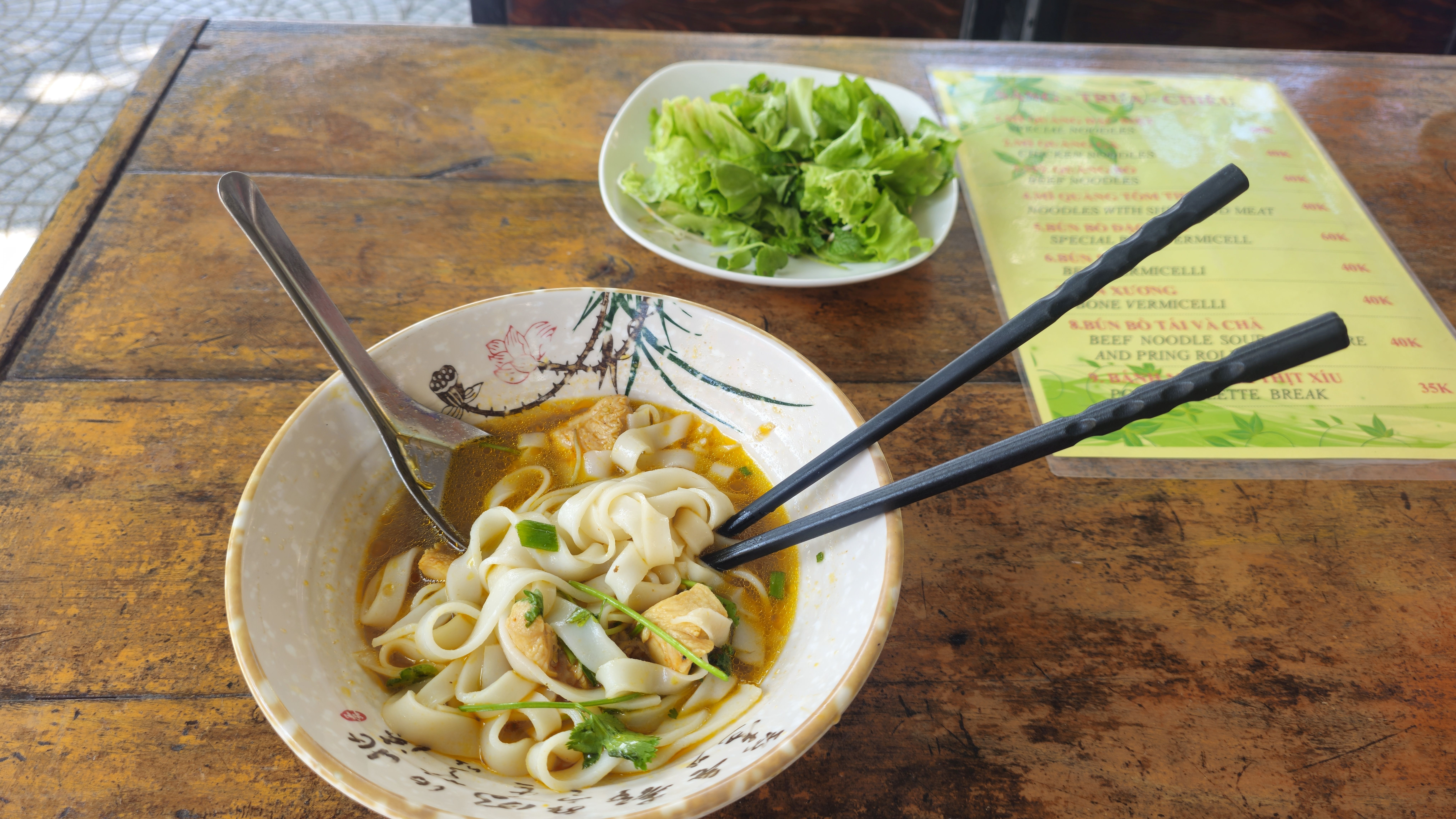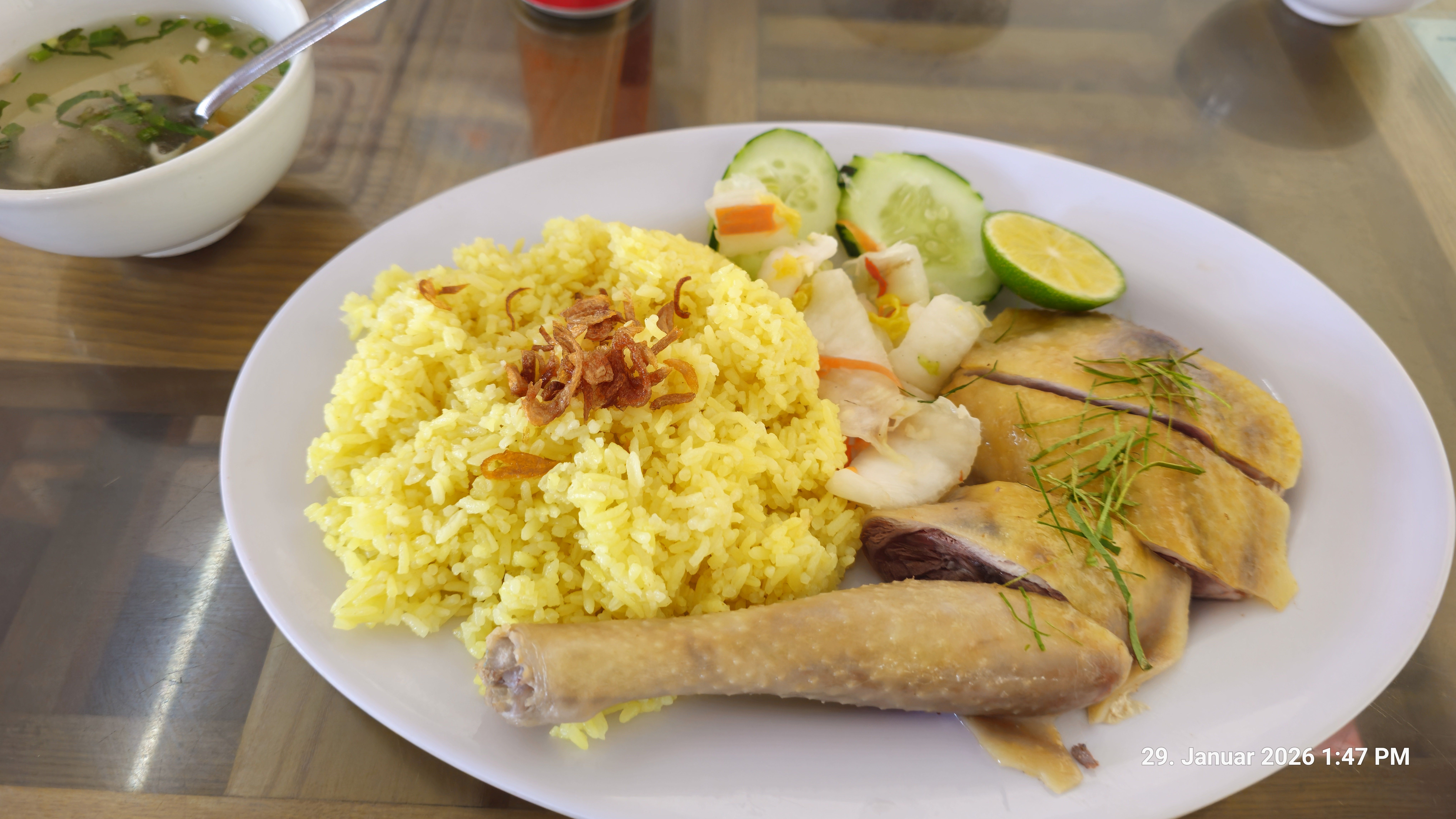 Abends war ich im Quan Com Nam beim essen. Dort hatte ich schon mal Mittags gegessen. Ich hatte mir ein Gemüse in Austernsauce und eine kleine Portion Reis bestellt und Hähnchen gegrillt,