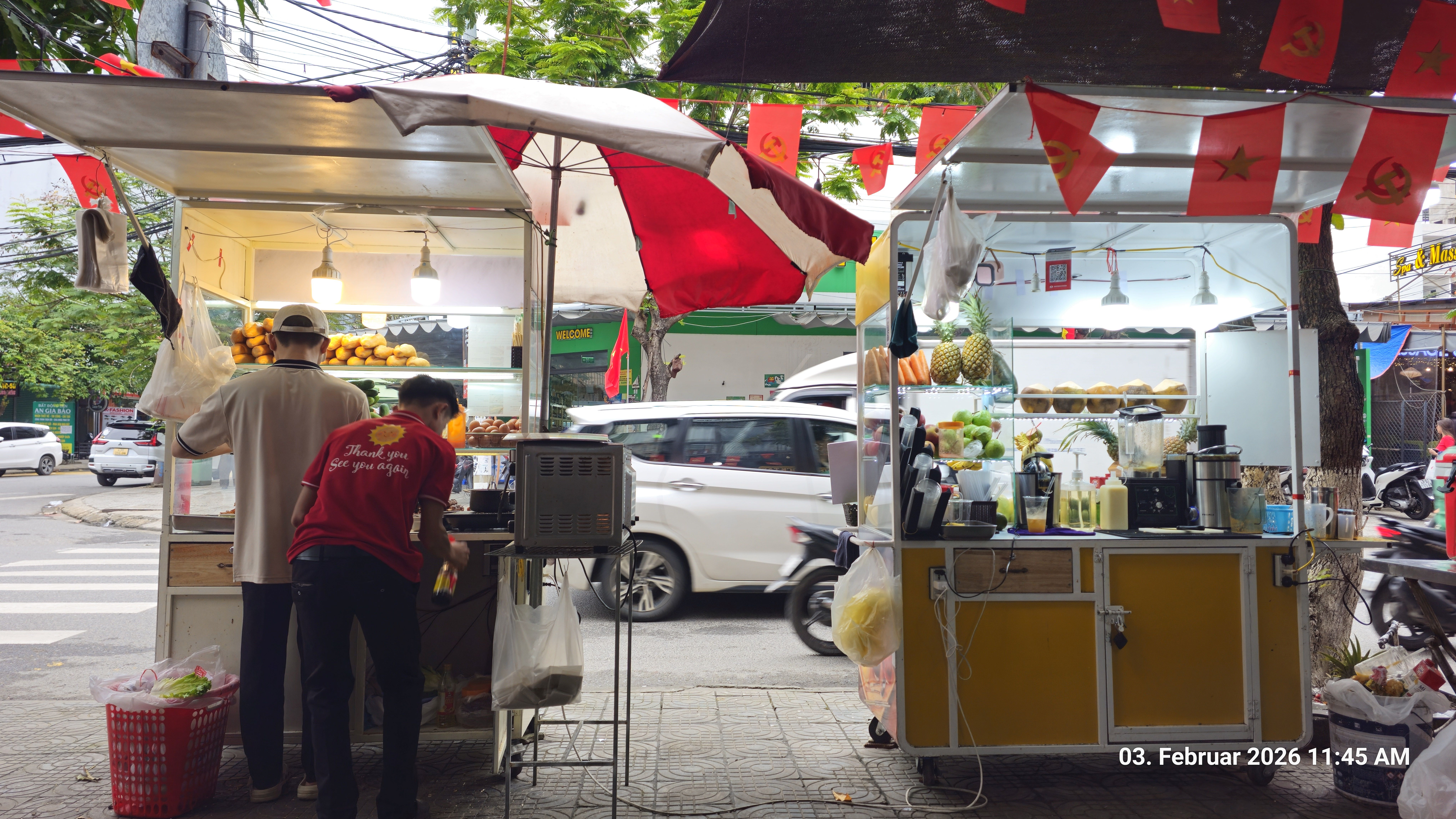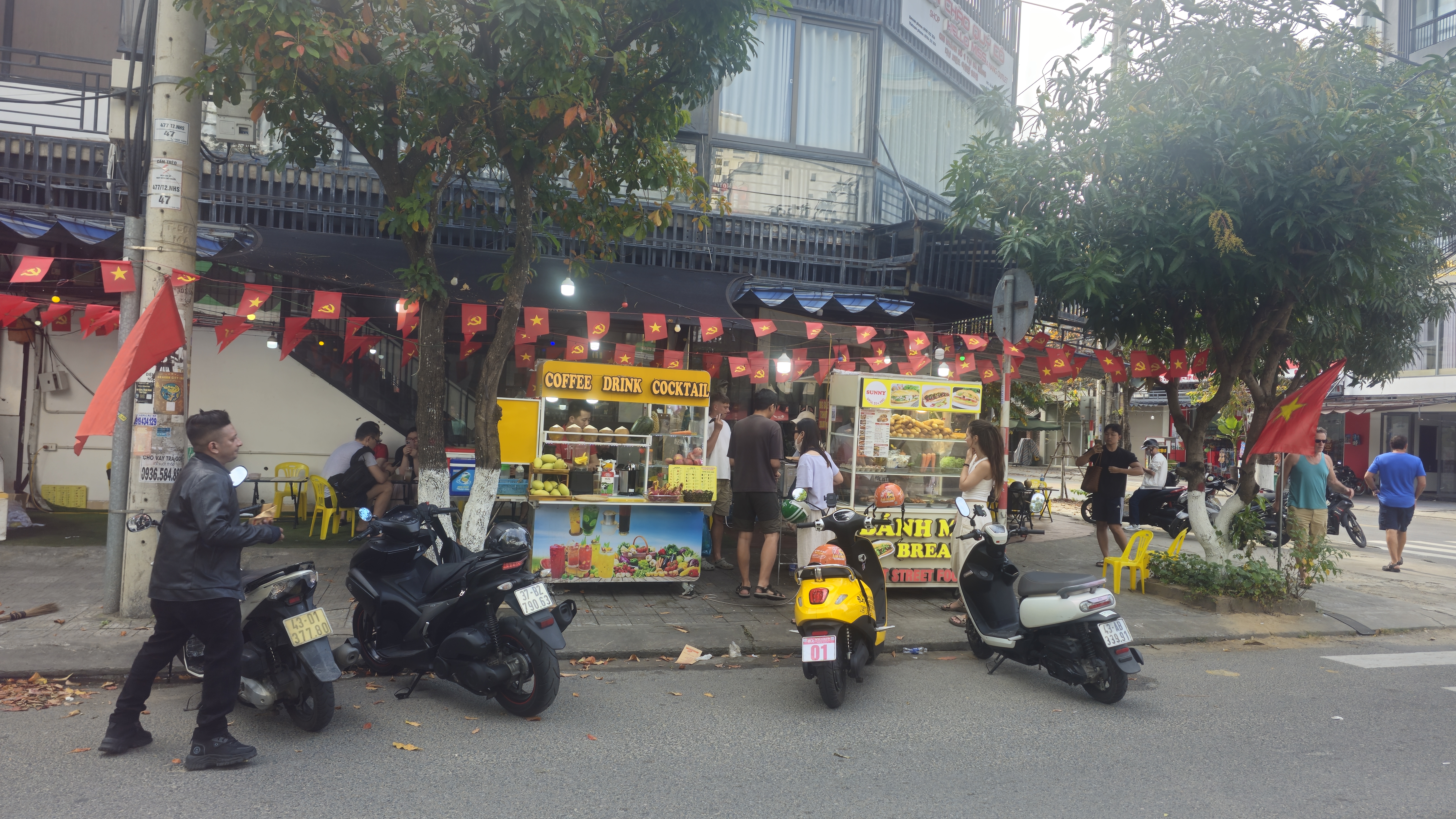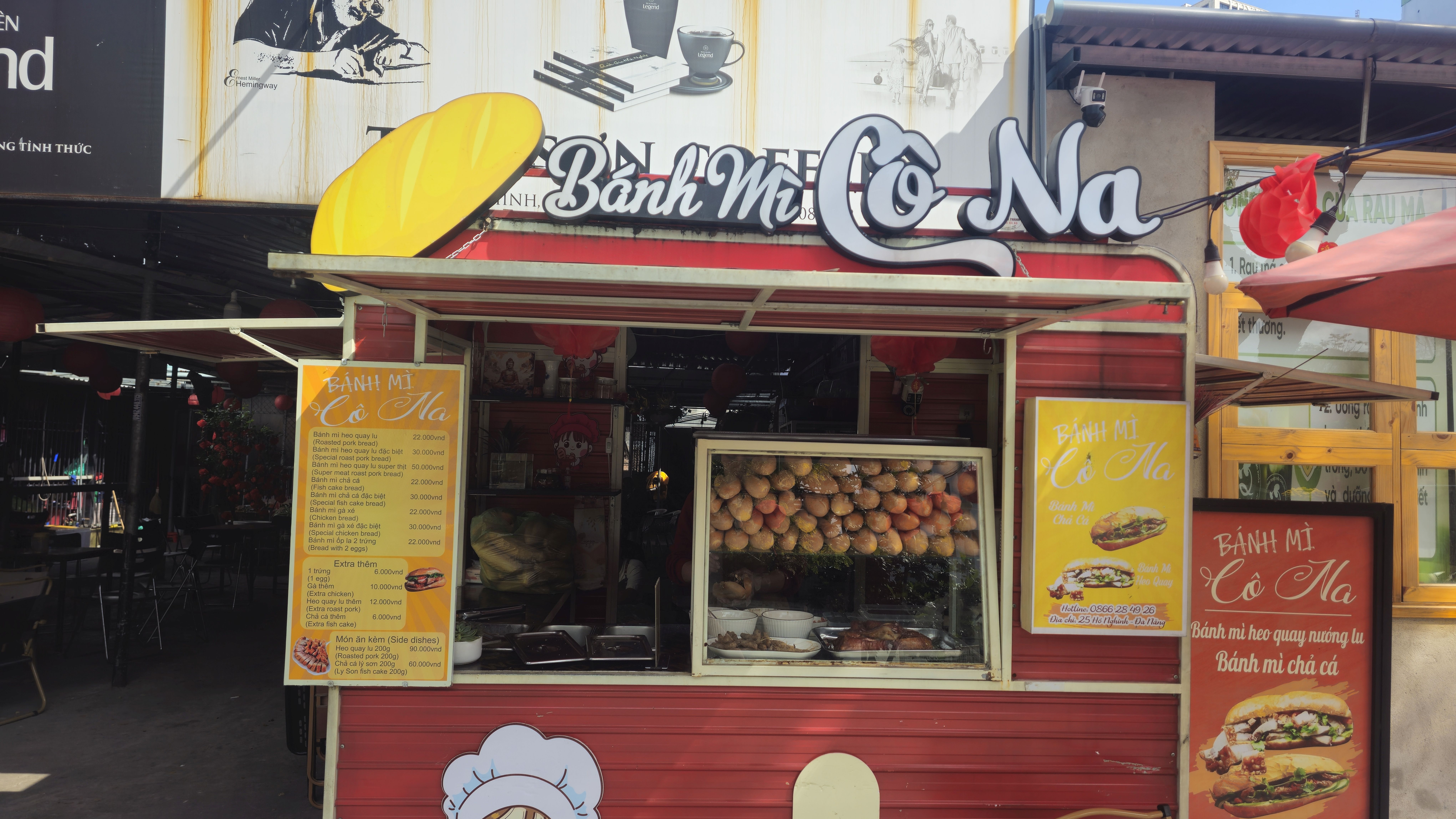Dann kam ich wieder am BanhMi Ba Dao vorbei, habe einen Stopp eingelegt und Fotos gemacht, mit dem schönen Blumenschmuck.