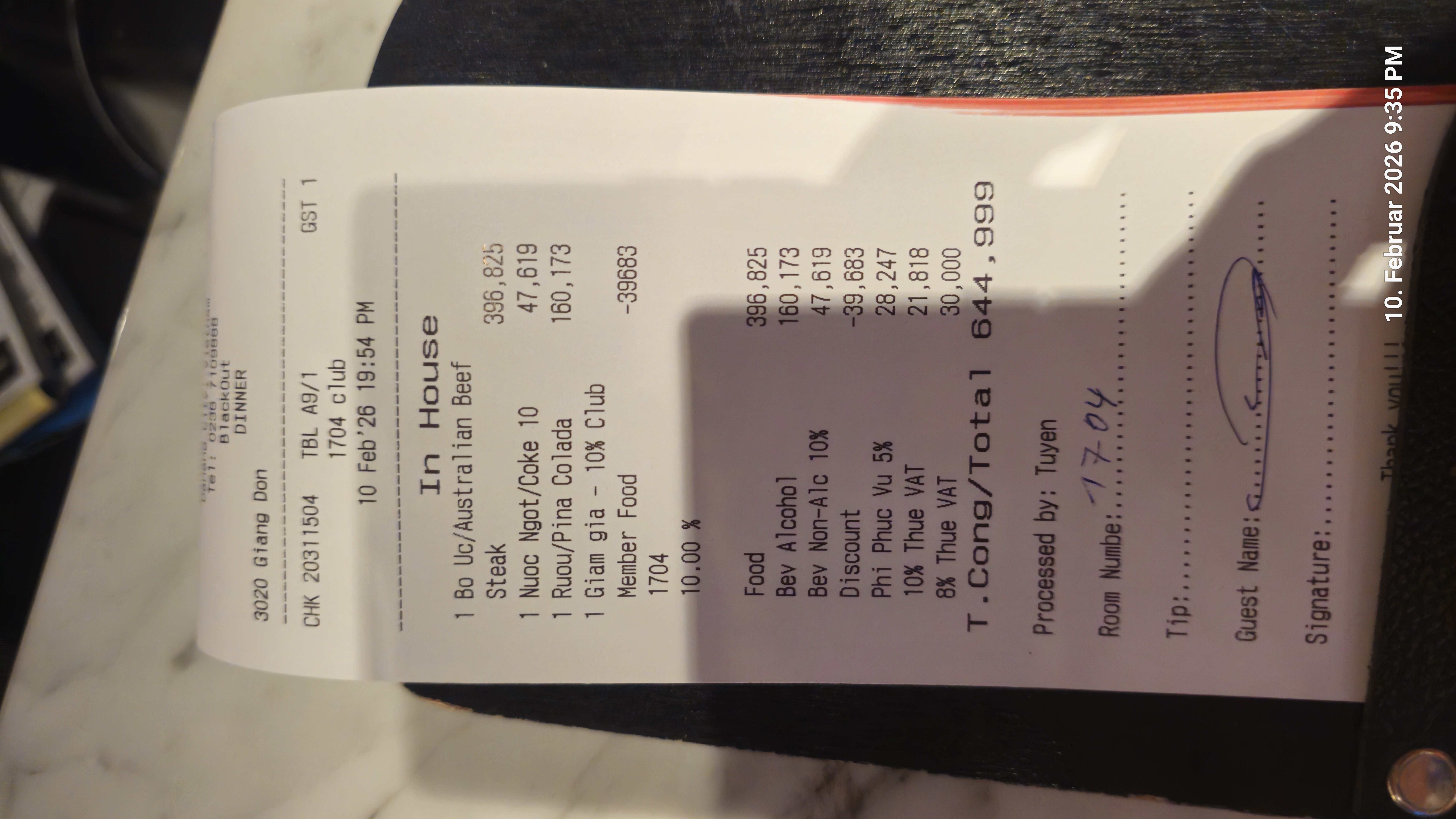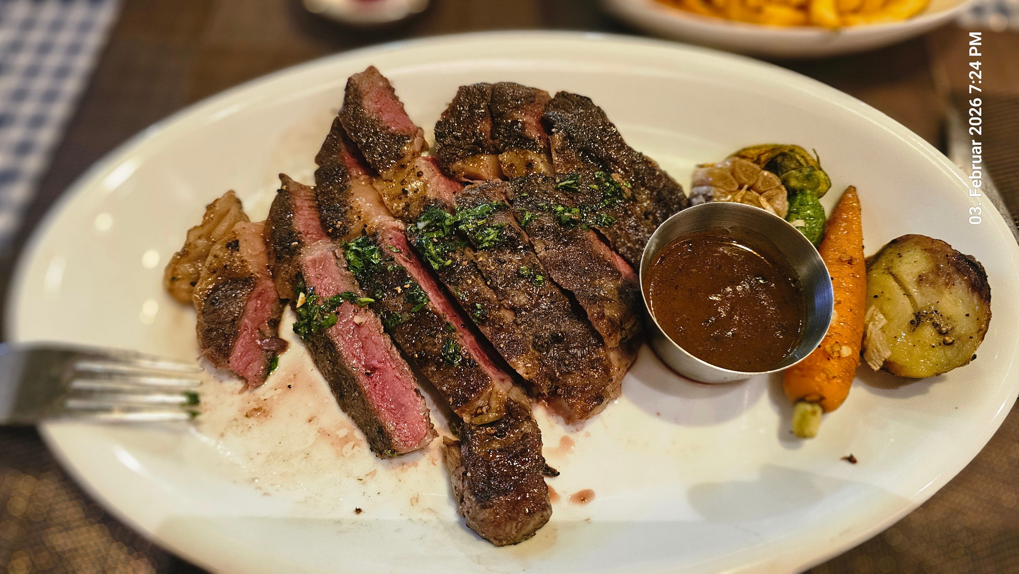 um 19:00 Uhr bin ich dann zum Essen gegangen und ich habe mir heute mal was besonderes gegönnt, ein Japan Wagyu Beef Striploin Steak von 250 Gramm (100 Gramm für 549.000 Dong das sind ca. 18 Euro).