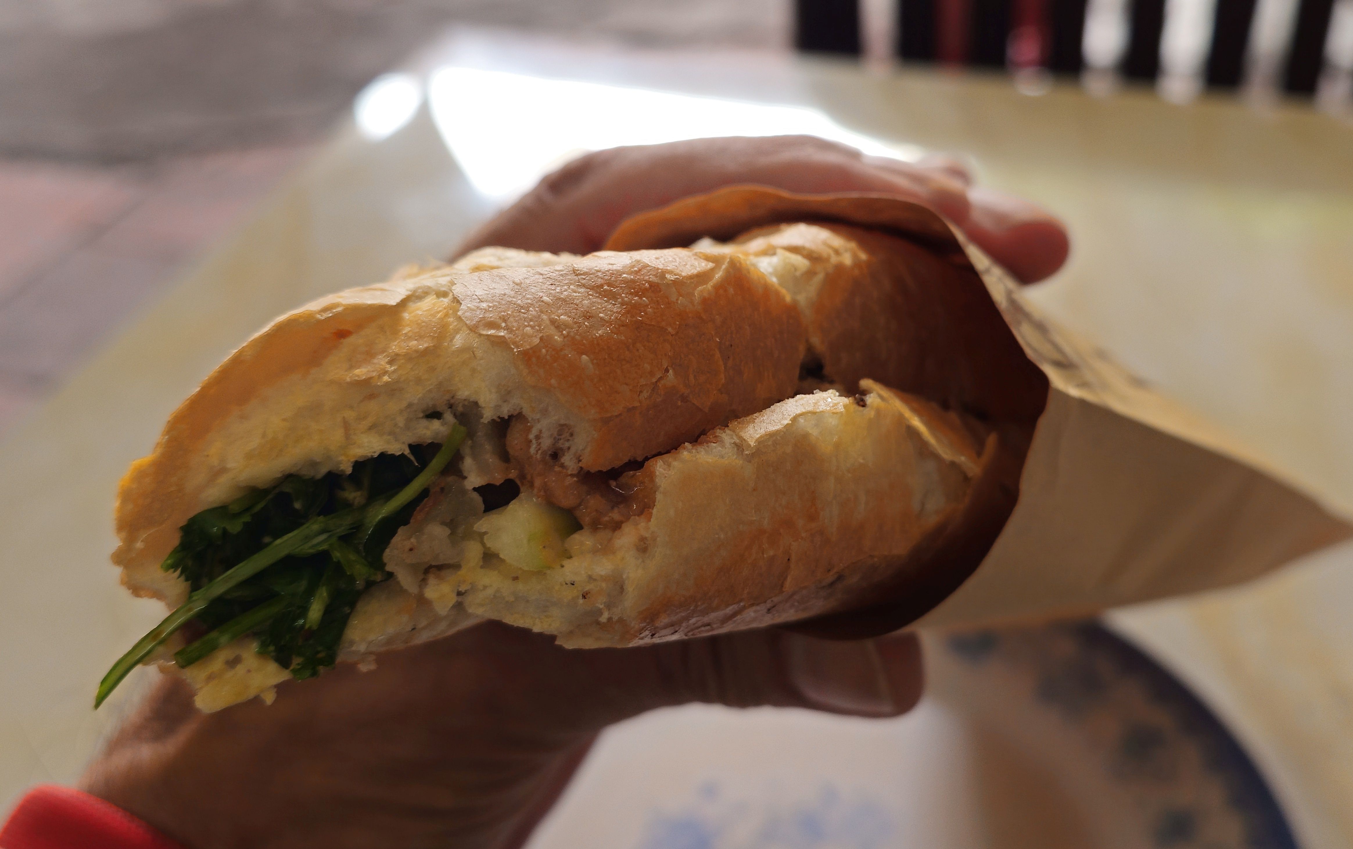 Auf dem Rückweg habe ich dann an einem BanMi Stand angehaltenein Foto von dem Stand gemacht und mir ein Ban Mi mit gegrilltem Fleisch bestellt...das war leider eine Enttäuschung und teuer obendrein.
