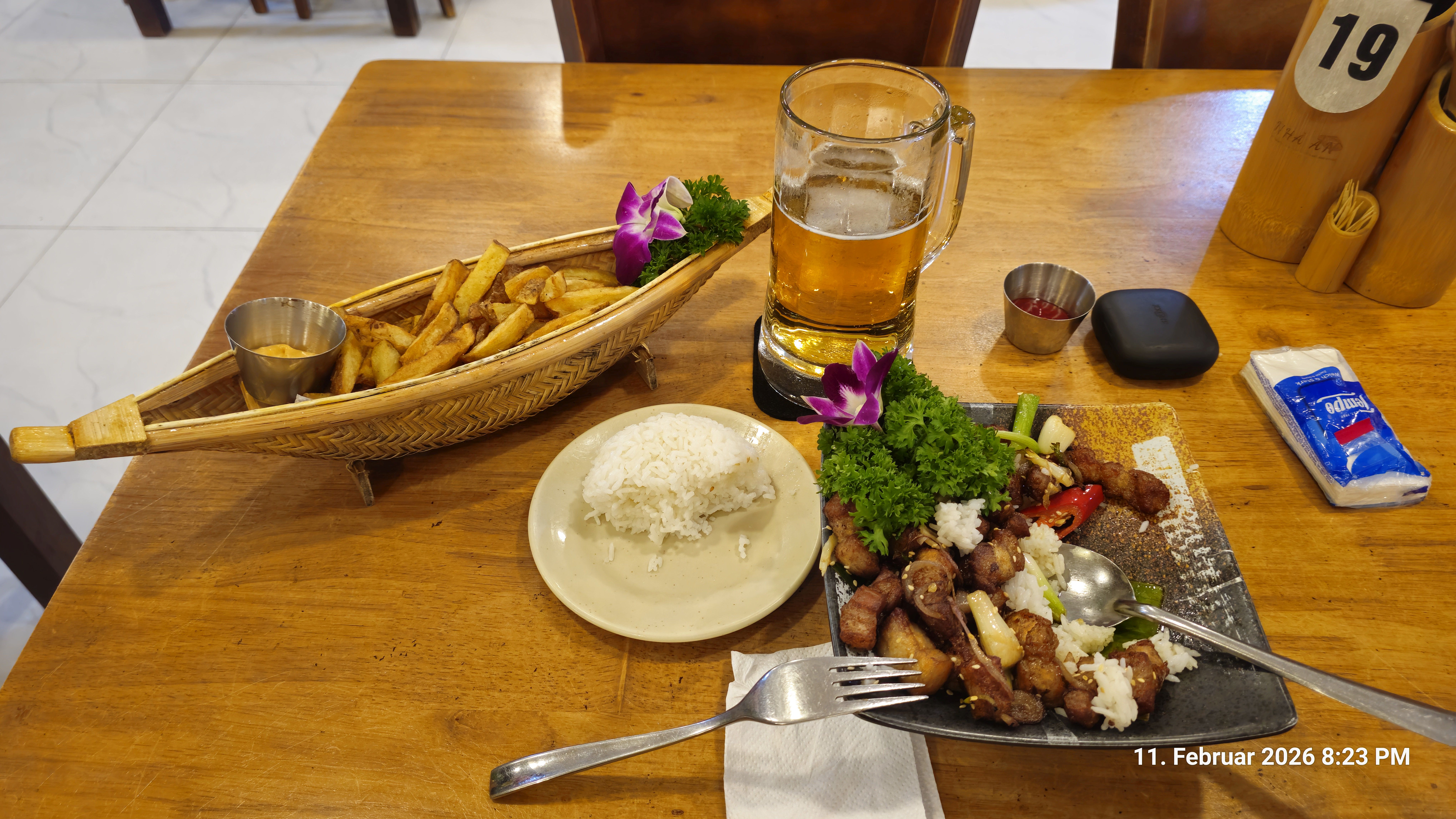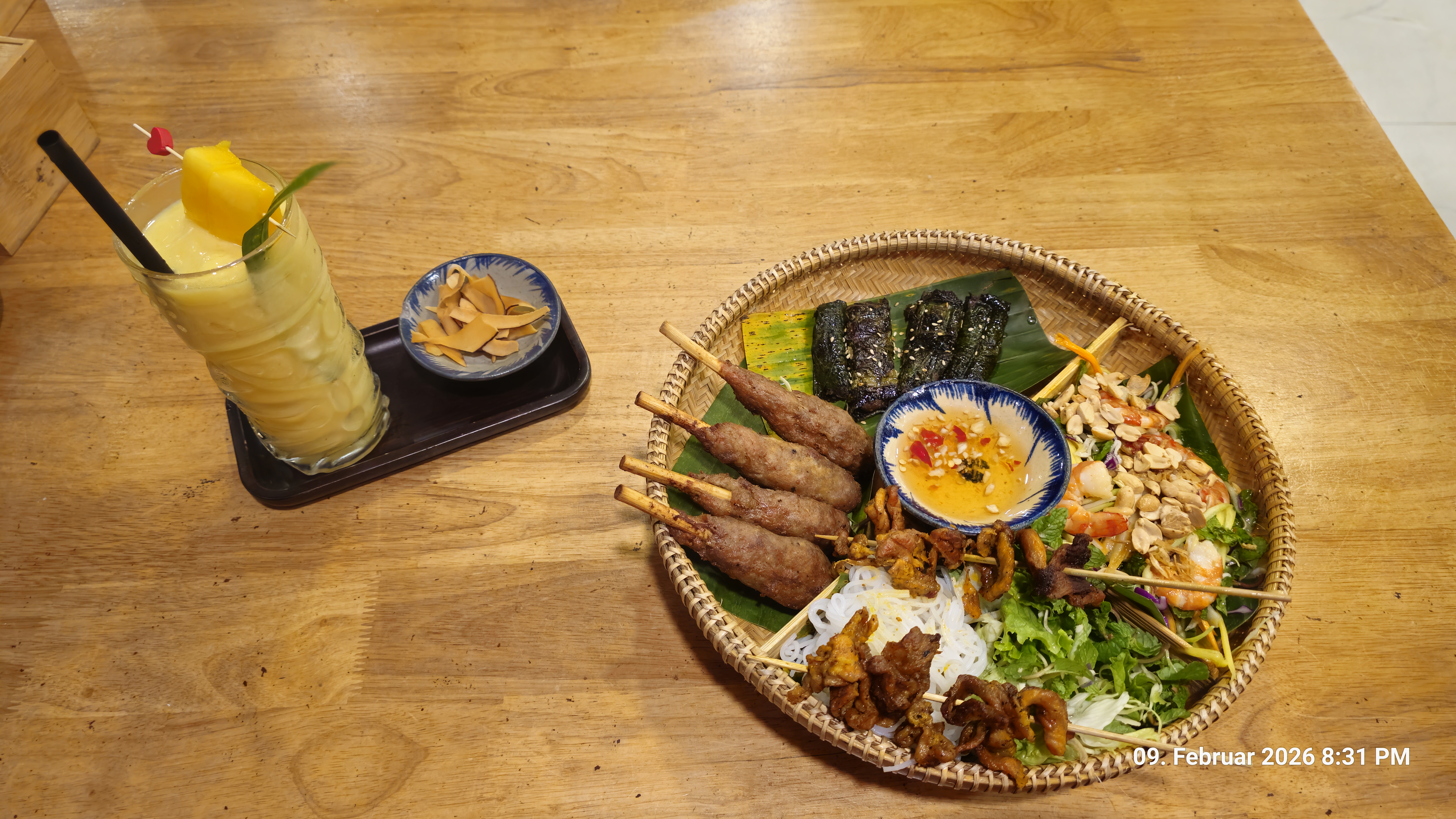 Ich habe dafür 50.000 Dong bezahlt und die Hälfte von dem gegrilltem Fleisch waren einfach nur Fettlappen, also bei uns würde man weissen Speck dazu sagen.