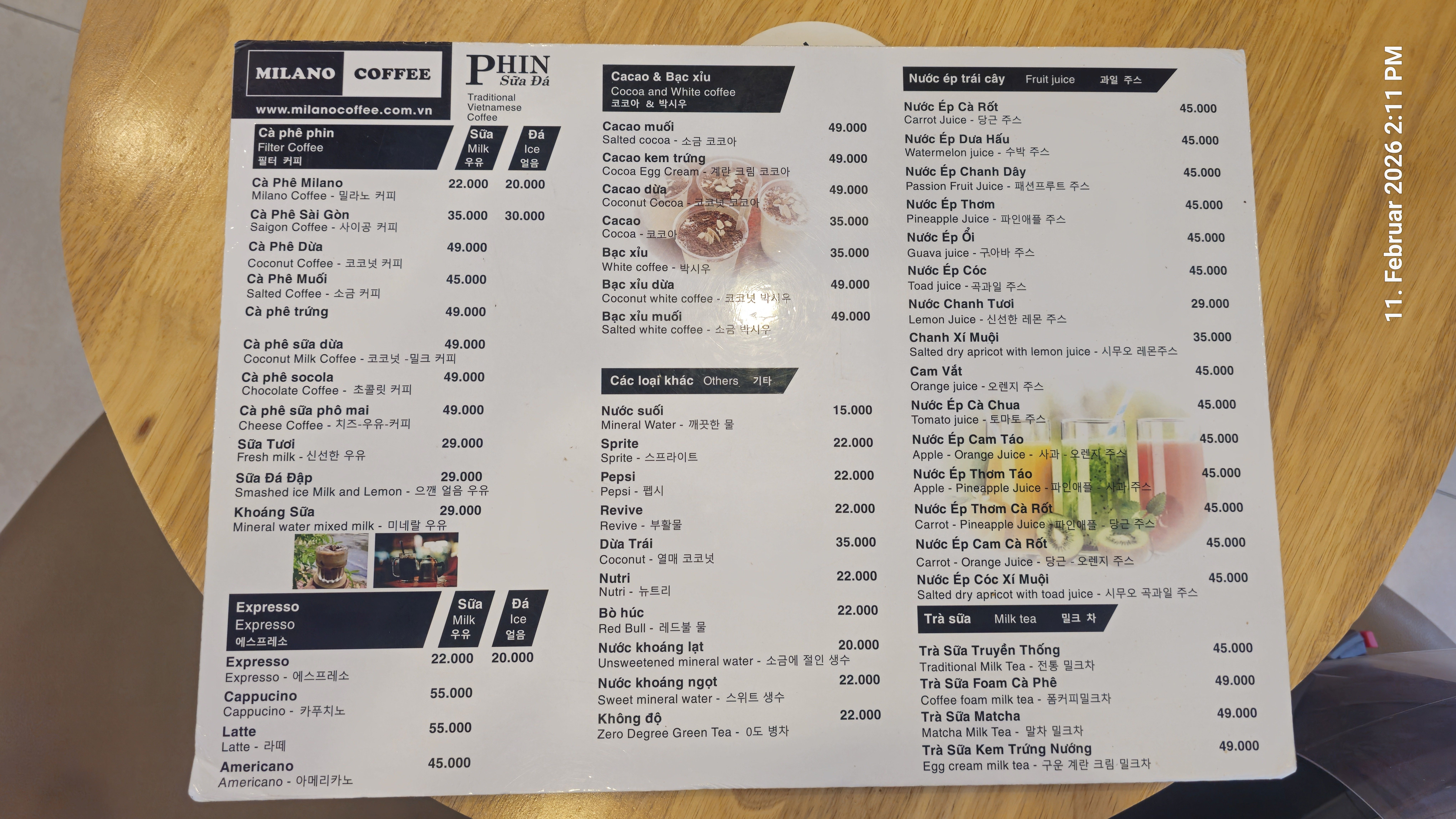In diesem Cafe das "Little HaNoi Egg Coffee" habe einen Salzcafe getrunken..ich habe auch einige Fotos von dem Cafe gemacht, also von der Getränkekarte, von den Räumlichkeiten nicht, da alles Plätze voll belegt waren....man kann auch von der ersten Etage auf einem balkon herunterschauen auf die Strasse.