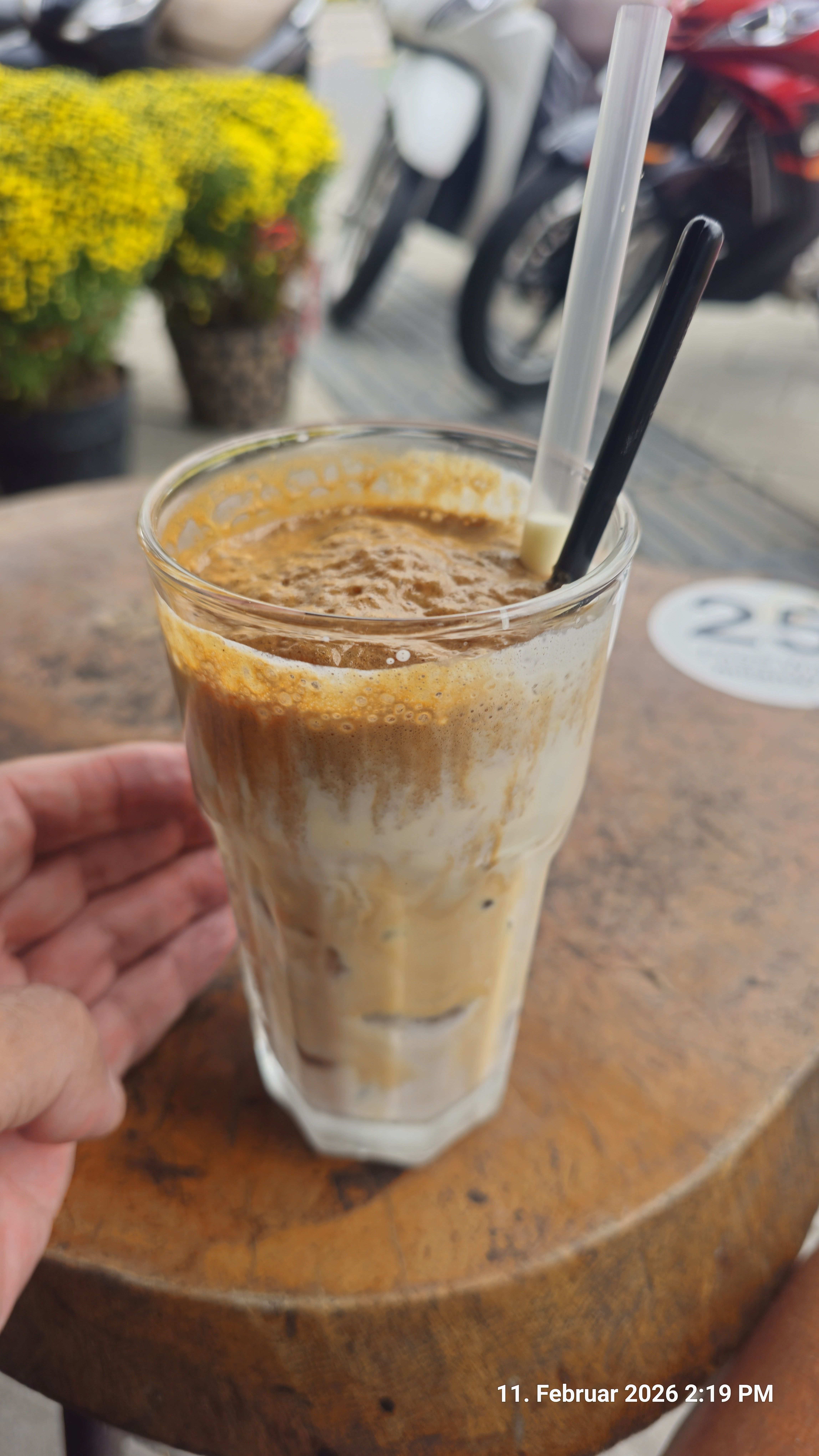 jetzt bin ich gegen über von meinem Hotel in ein Cafe gegangen. Und weil ich die vietnamesischen Cafes mal durchprobieren wollte, habe ich mkr heute mal einen sogenannten Salzcafe bestellt....