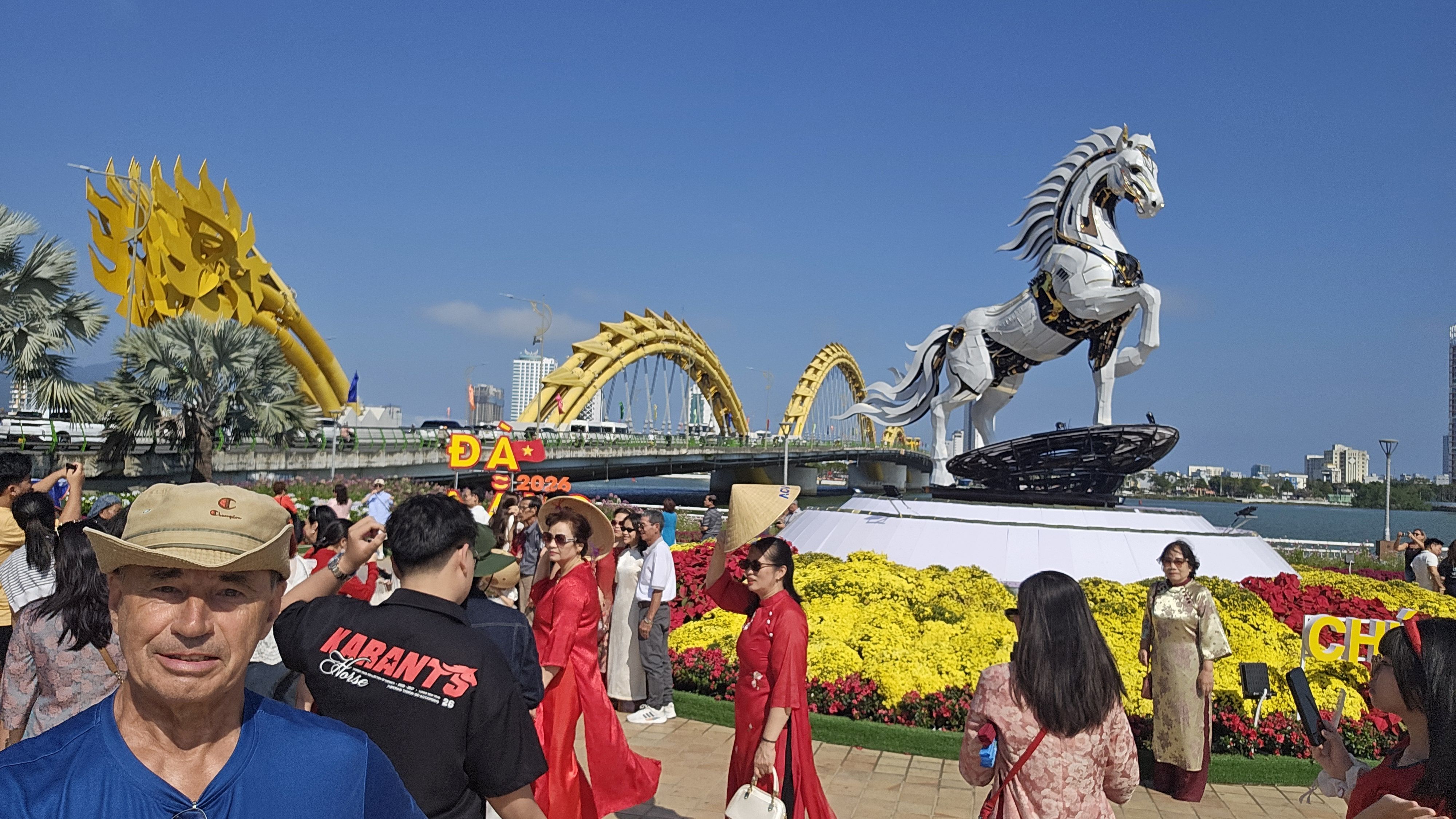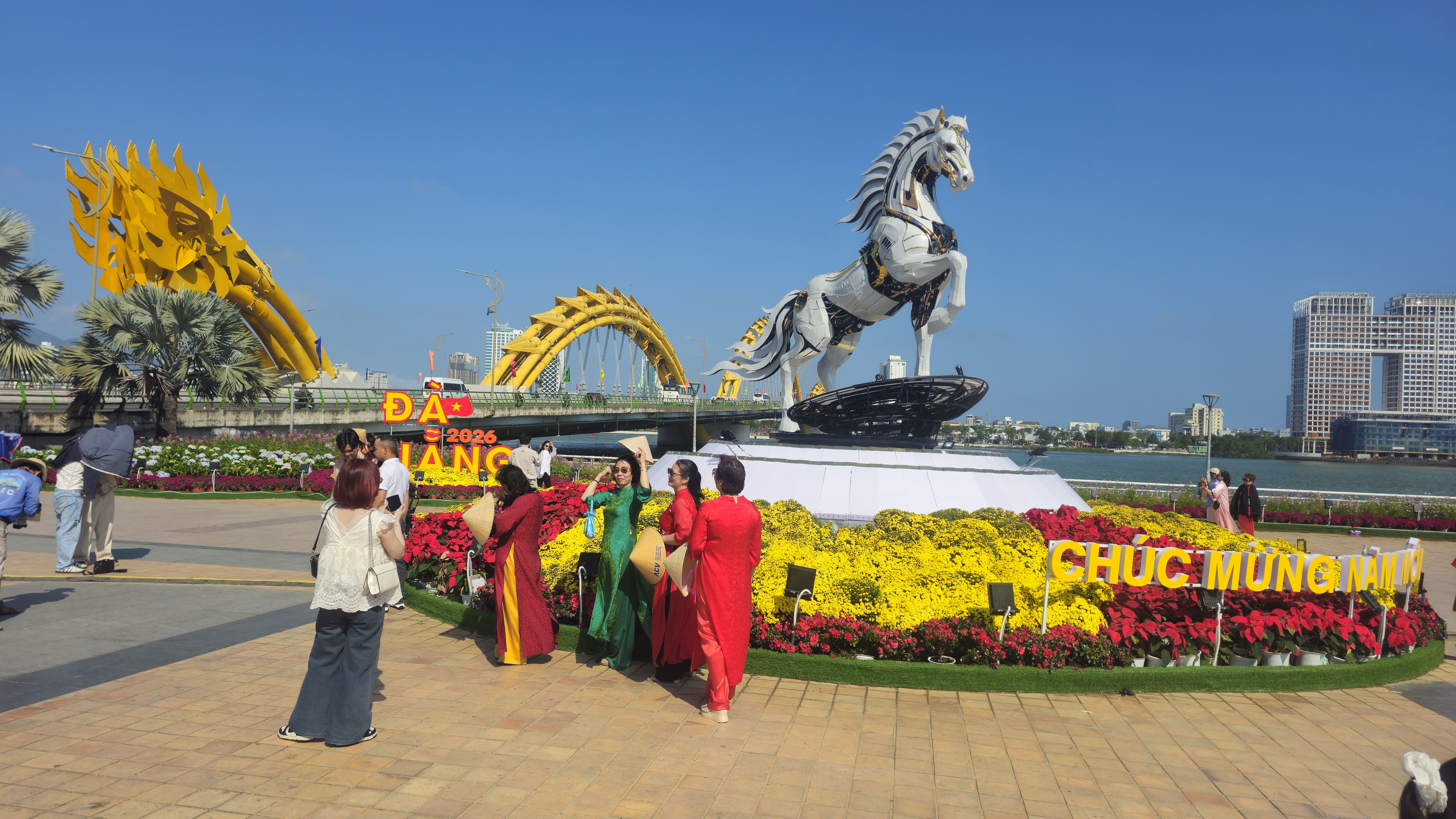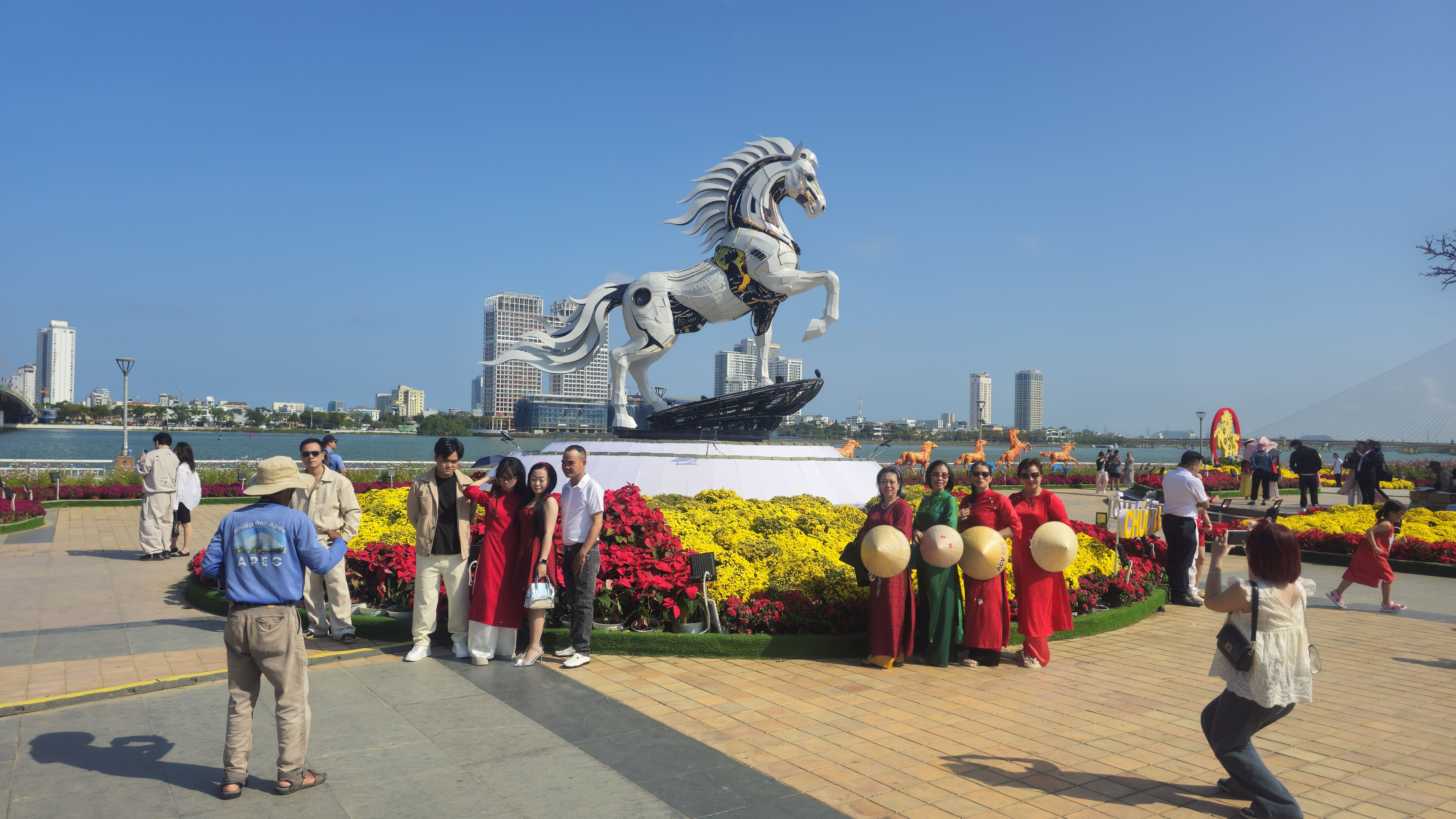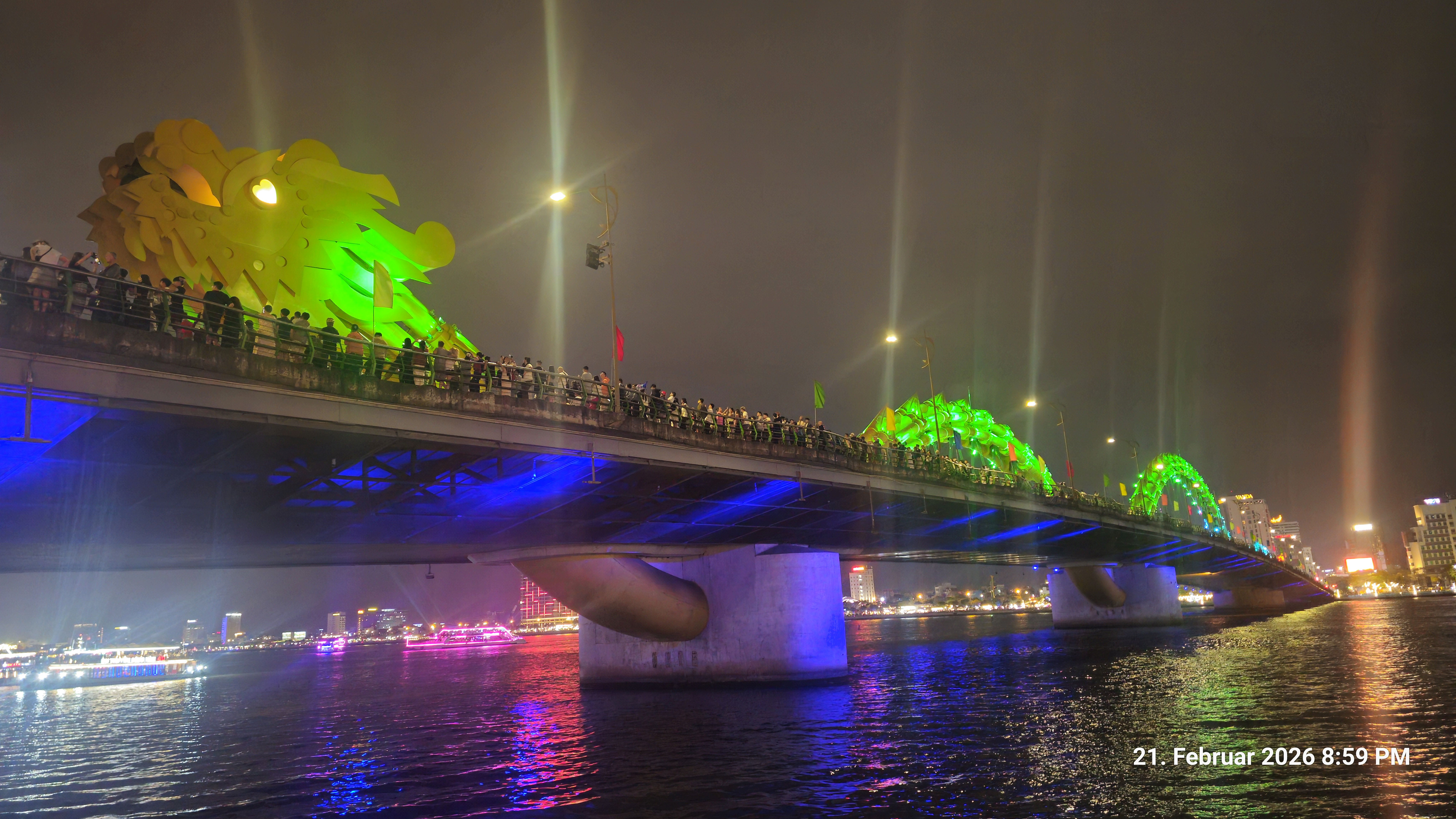 Nach dem Essen sind wir zur Drachenbrücke gefahren um das das Spektakel um den Feuer und Wasser speienden Drachen zu sehen.