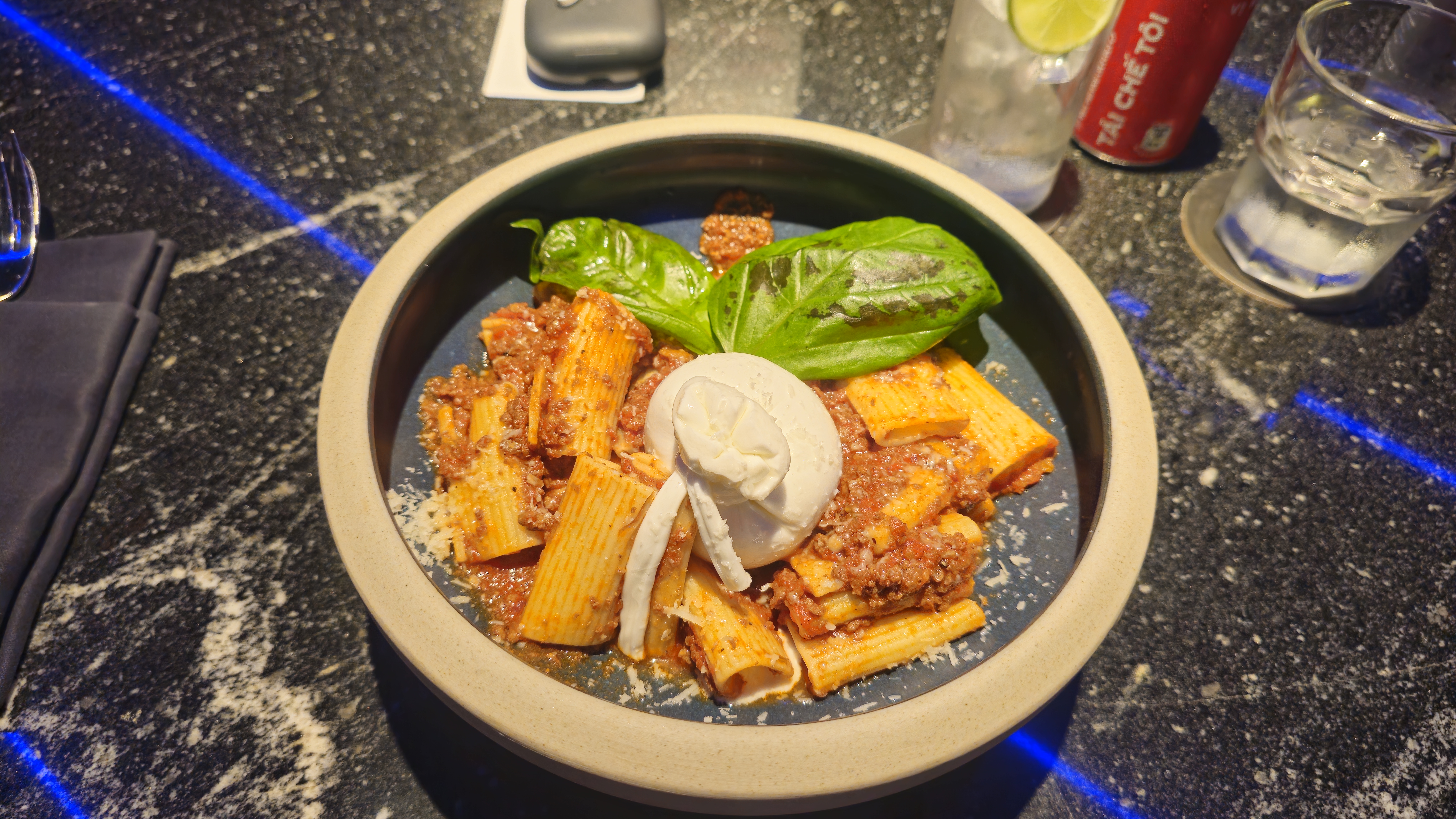 Gegen 18:30 bin in meinem Hotel in die 25. Etage gefahren und habe dort wieder Rigatoni gegessen.